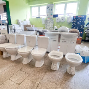 - Lustra, deski WC, kosze, uchwyty na papier.